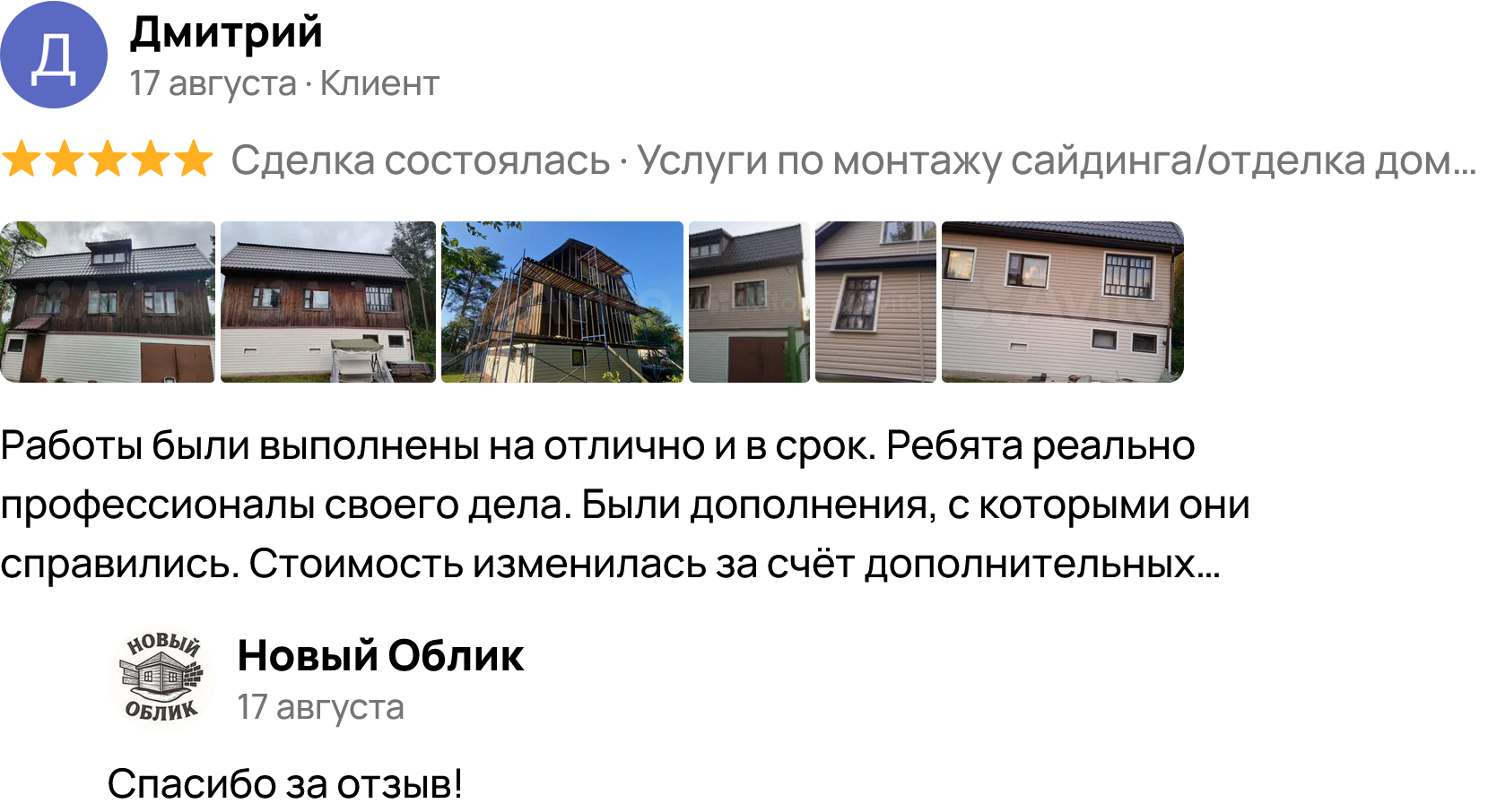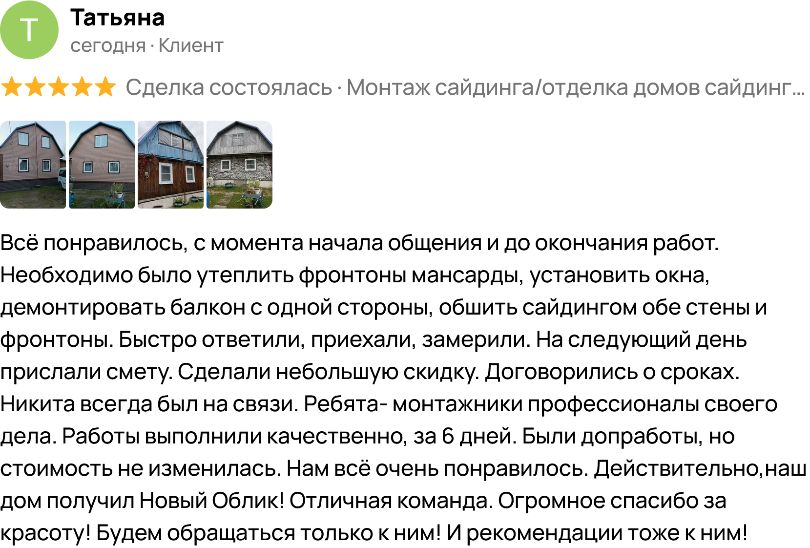 Полный цикл работ по сайдингу и фасадам. Гибкая комплектация под задачи и бюджет.